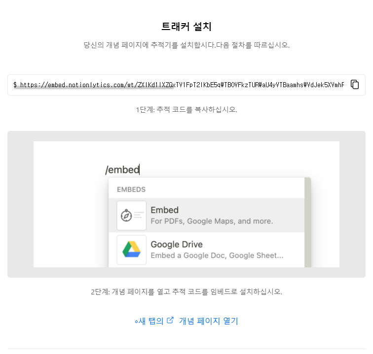 추적할 페이지에 링크를 임베드 합니다.
