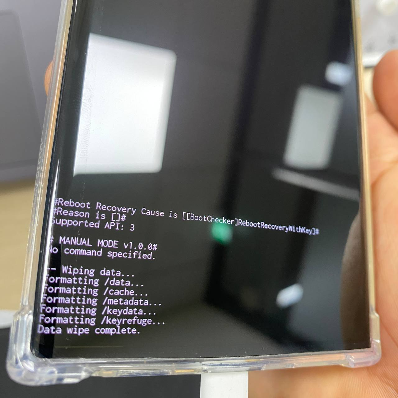6) Data wipe complete. 문구가 뜨면 초기화가 완료되었습니다.