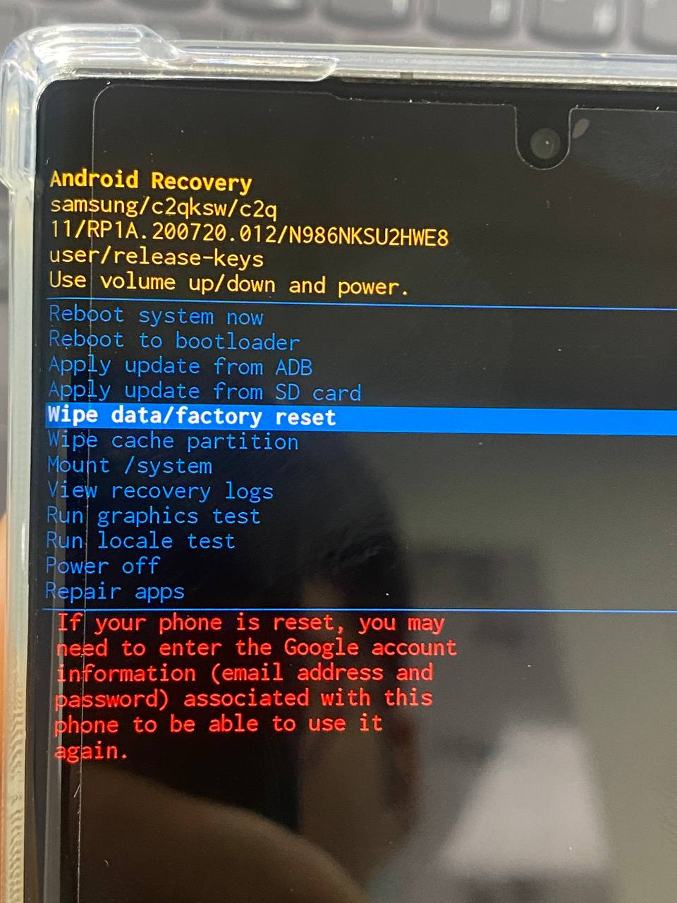 볼륨 키를 조작하여 [Wipe data/factory reset] 목록을 선택합니다.